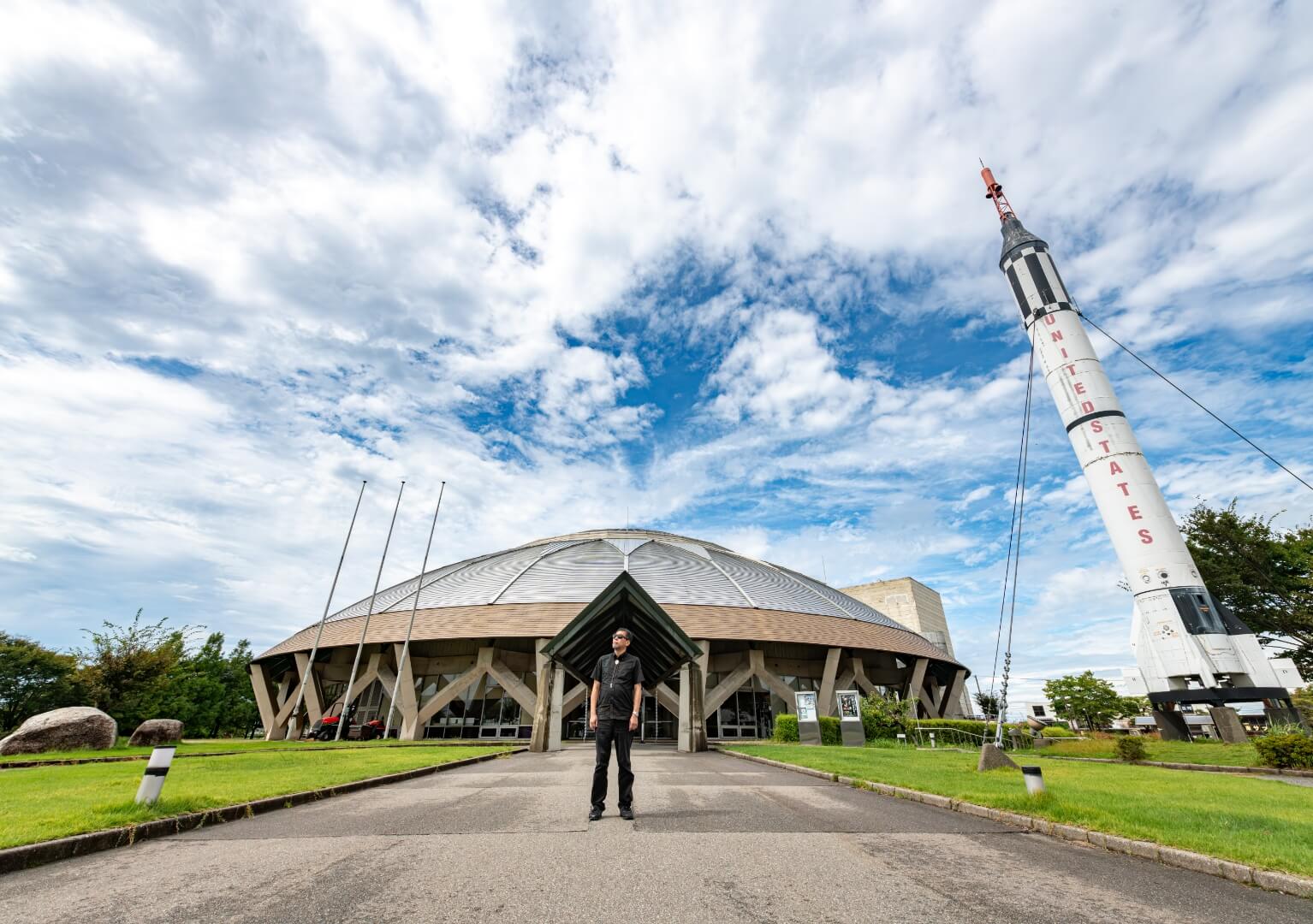 ムー的に巡る能登・羽咋の旅。その起点となる場所は、宇宙科学博物館「コスモアイル羽咋」。1996年に開館した、「UFOのまち」羽咋を代表する施設です。まずは金沢市から特急で約35分(普通列車や車なら約60分)に位置する、この場所まで向かいましょう。