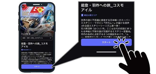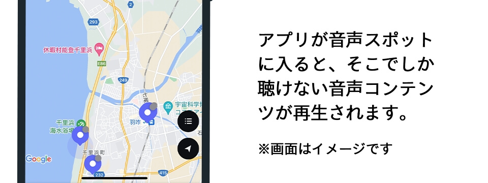 アプリが音声スポットに入ると、そこでしか聴けない音声コンテンツが再生されます。